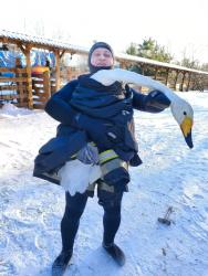 Сейчас спасённый лебедь находится в тёплом помещении на территории экопарка «Олений остров». За его здоровьем следят ветеринары. Весной, когда водоёмы полностью освободятся ото льда, специалисты оценят состояние птицы и примут решение: выпустить её на волю или оставить под опекой в парке.