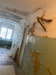 По словам жильцов, состояние здания стремительно ухудшается: фасад осыпается, в подъездах — запущенность, а по стенам и потолкам идут глубокие трещины. В подвале постоянно стоит вода почти до самого верха, а на поверхностях — чёрные пятна, похожие на плесень.