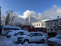 В Кировском районе Саратова горит двухэтажное здание 1917 года постройки. Вызов поступил в 14.38 на улицу Большая Казачья, 56. Произошло загорание кровли жилого дома.