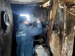 В огне погибла 60-летняя женщина. Предположительно, возгорание произошло из-за неосторожного обращения с огнем при курении погибшей.